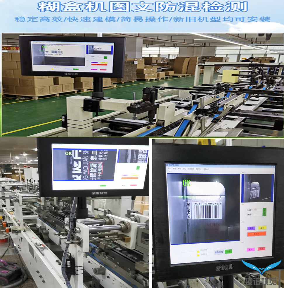 湖北糊盒機檢糊一體混料檢測圖文檢測CCD圖像檢測--凌誼